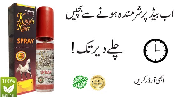 نائٹ رائیڈر ڈیلے اسپرے مردانہ قوت اور ہمبستری کے وقت کو بڑھانے کے لیے ایک مشہور اور مؤثر اسپرے ہے۔ یہ خاص طور پر اُن مردوں کے لیے تیار کیا گیا ہے جو قبل از وقت انزال (جلدی فارغ ہونے) کی شکایت رکھتے ہیں۔ اسپرے کا استعمال تسلی بخش تاخیر فراہم کرتا ہے، جس سے آپ اپنے شریکِ حیات کے ساتھ زیادہ وقت گزار سکتے ہیں۔